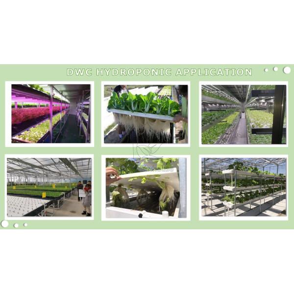 DWC(Deep water culture) it refers to a hydroponic technology in which the roots of plants grow in a relatively deep and flowing nutrient solution layer. The planting tank is filled with a nutrient solution of about 5-10 cm and sometimes even deeper, and the root system of the crop is placed in it. At the same time, the water pump is used to intermittently open the liquid supply to make the nutrient solution circulate, so as to supplement the oxygen in the nutrient solution and make the nutrients in the nutrient solution. more uniform. It consists of a liquid storage tank, a flotation board, a circulation system, etc.